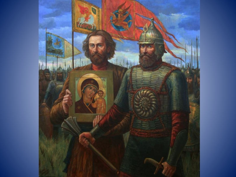 Слайд 14Народное ополчение выступило на освобождение Москвы. Впереди несут образ Казанской Божией