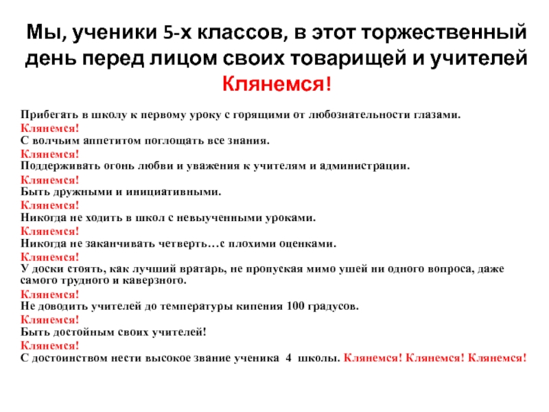 С достоинством нести высокое звание ученика 4 школы. Клянемся! Клянемся! Клянемся!