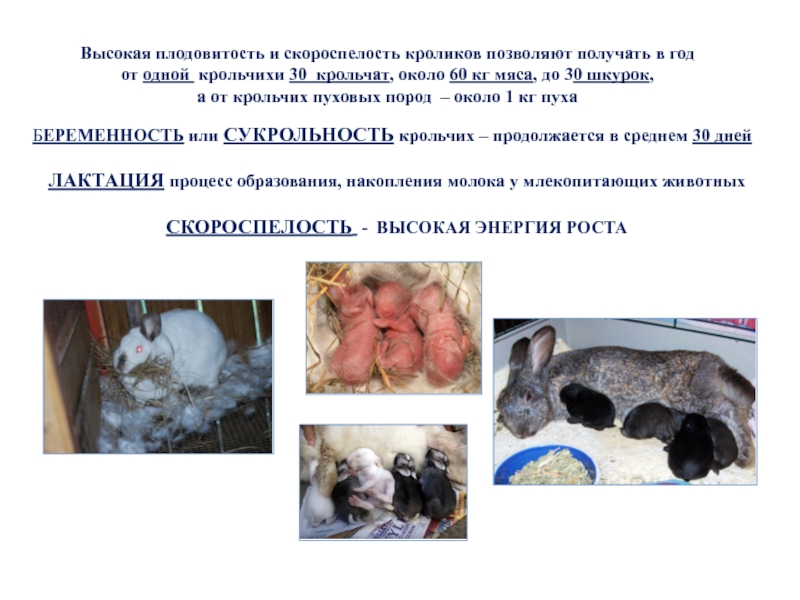 БЕРЕМЕННОСТЬ или СУКРОЛЬНОСТЬ крольчих – продолжается в среднем 30 дней