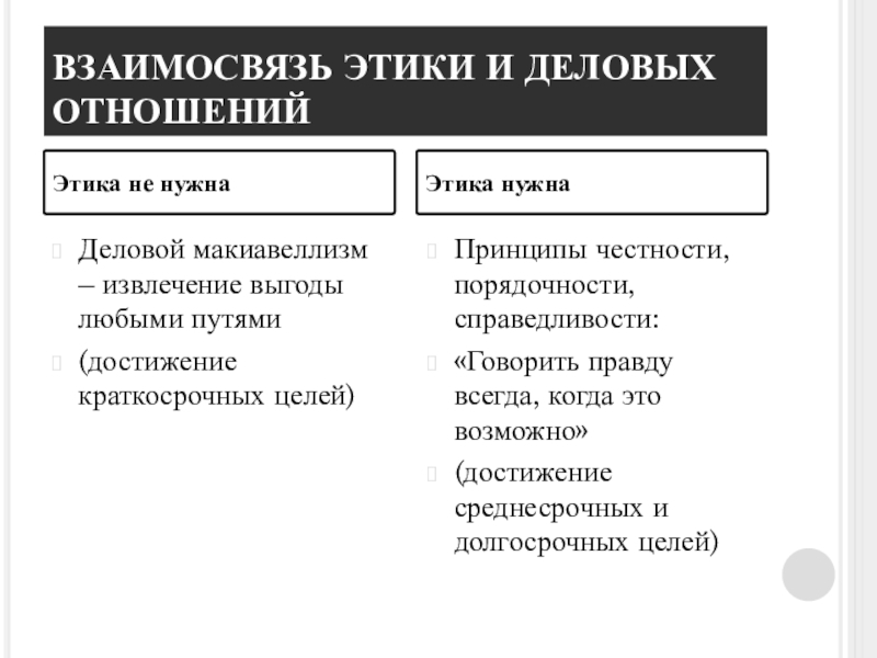 Слайд 6ВЗАИМОСВЯЗЬ ЭТИКИ И ДЕЛОВЫХ ОТНОШЕНИЙ