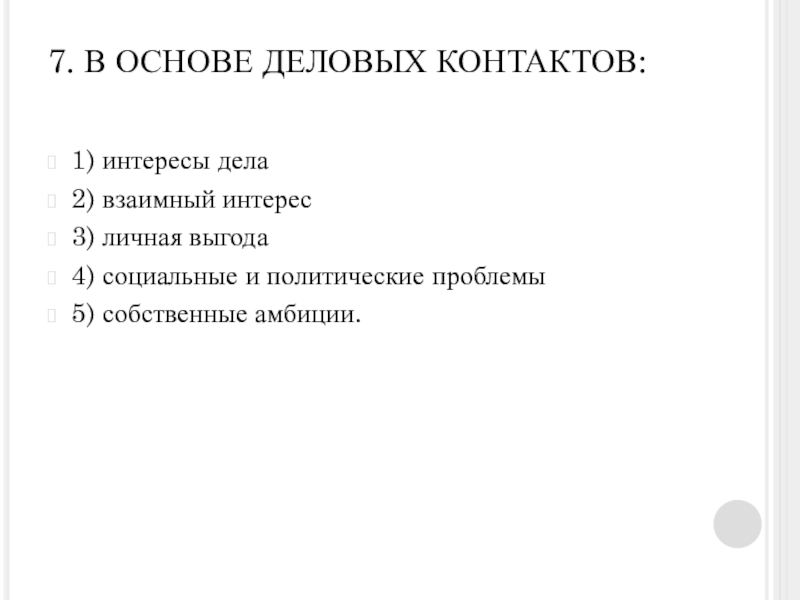 Слайд 227. В ОСНОВЕ ДЕЛОВЫХ КОНТАКТОВ: