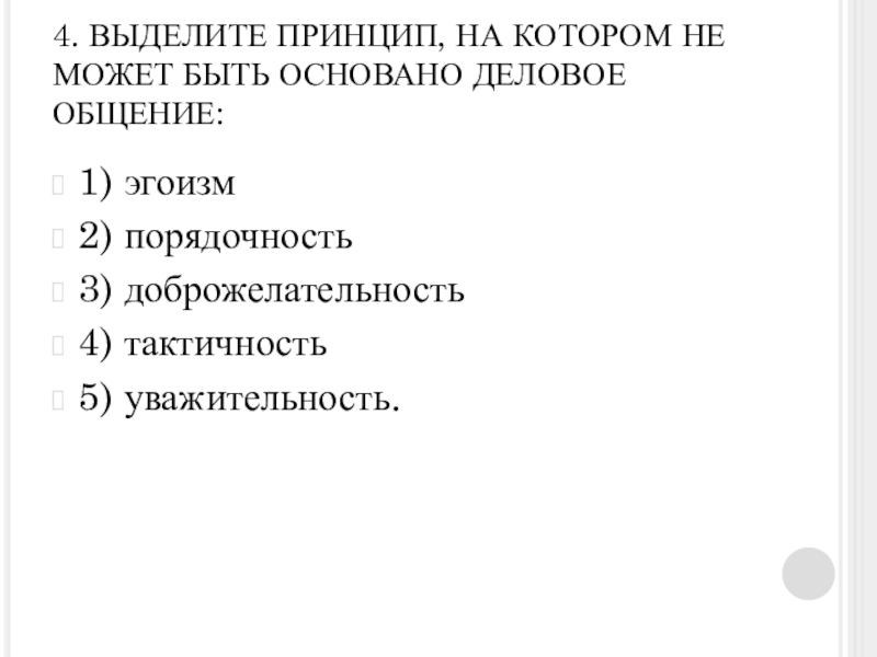 Слайд 194. ВЫДЕЛИТЕ ПРИНЦИП, НА КОТОРОМ НЕ МОЖЕТ БЫТЬ ОСНОВАНО ДЕЛОВОЕ ОБЩЕНИЕ: