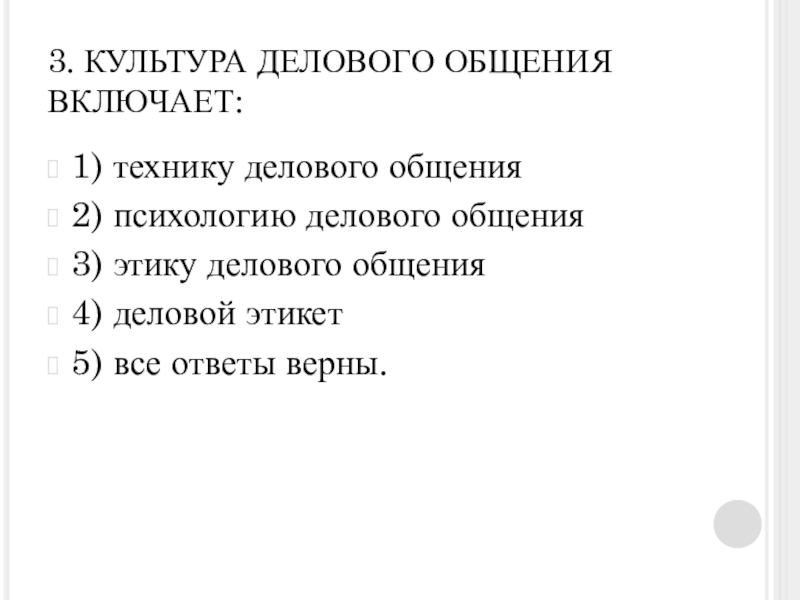 Слайд 183. КУЛЬТУРА ДЕЛОВОГО ОБЩЕНИЯ ВКЛЮЧАЕТ: