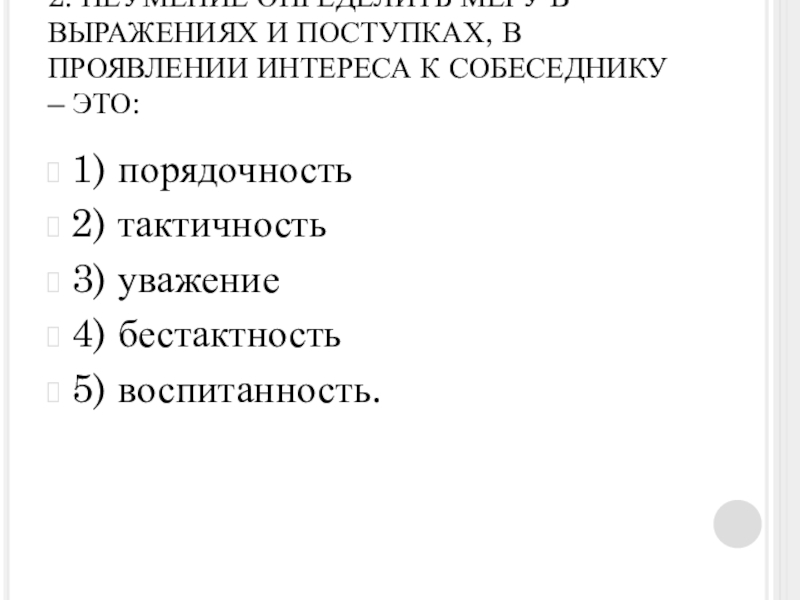 Слайд 172. НЕУМЕНИЕ ОПРЕДЕЛИТЬ МЕРУ В ВЫРАЖЕНИЯХ И ПОСТУПКАХ, В ПРОЯВЛЕНИИ ИНТЕРЕСА