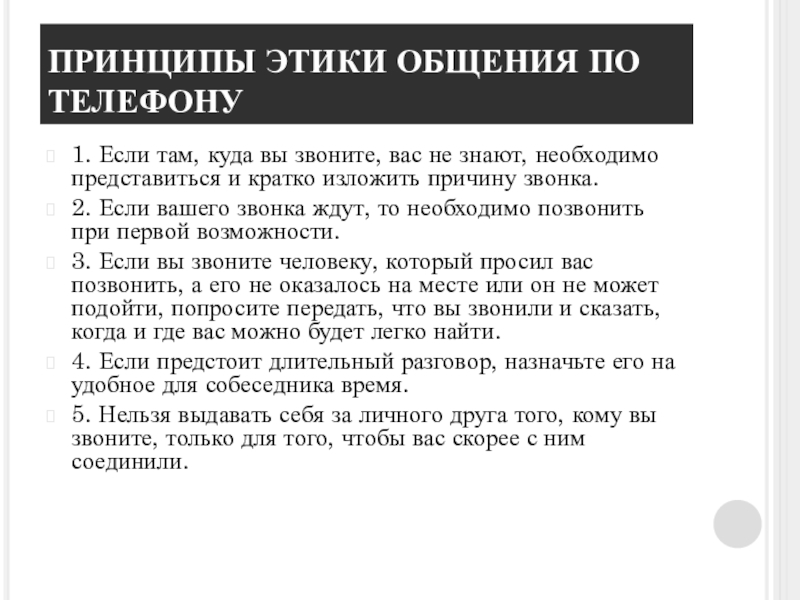 Слайд 14ПРИНЦИПЫ ЭТИКИ ОБЩЕНИЯ ПО ТЕЛЕФОНУ