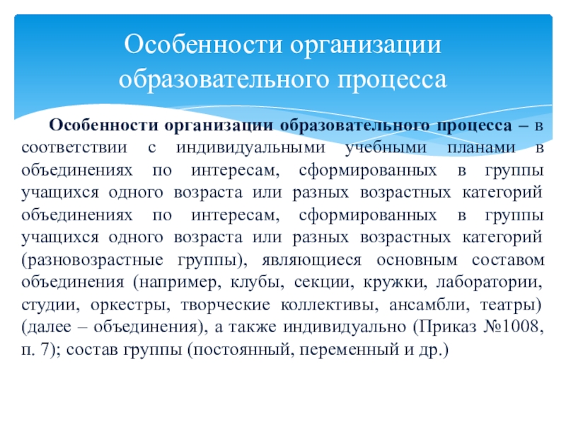 Формы обучения – очная, очно – заочная или заочная форма (Закон №273 – ФЗ, гл. 2, ст. 17, п. 2), а также «допускается сочетание различных форм получения образования и форм обучения» (Закон №273 – ФЗ, гл. 2, ст. 17, п. 4).
