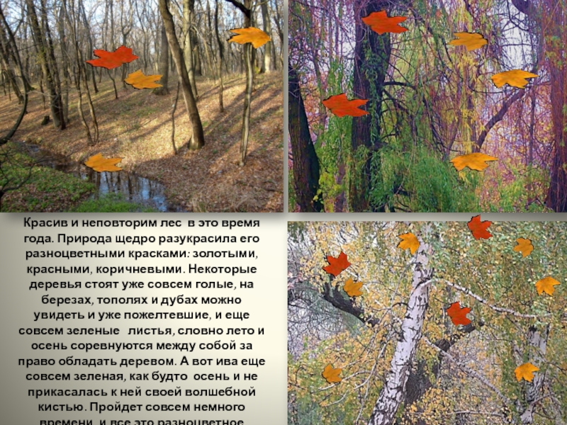 Слайд 5Красив и неповторим лес в это время года. Природа щедро разукрасила