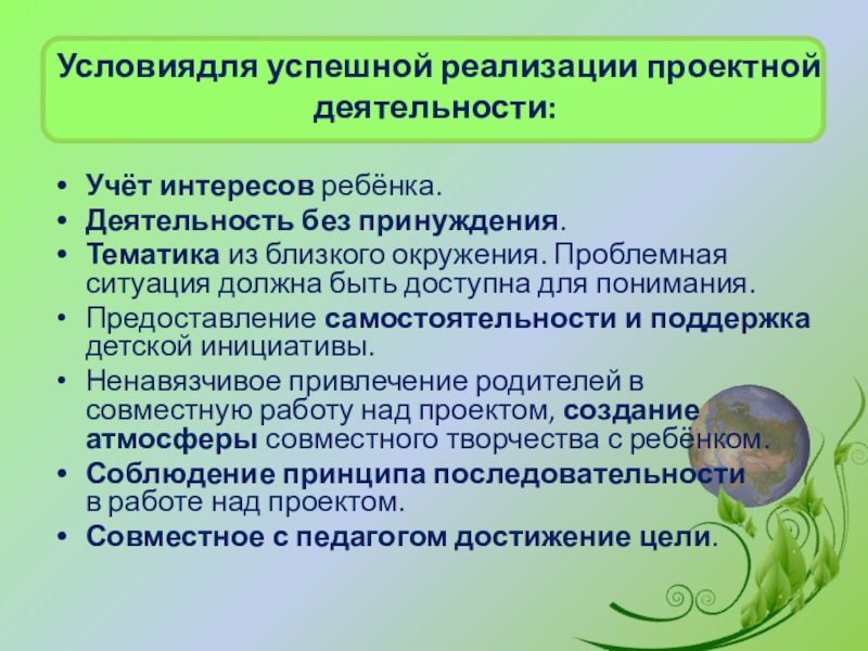 Слайд 21Условиядля успешной реализации проектной деятельности: