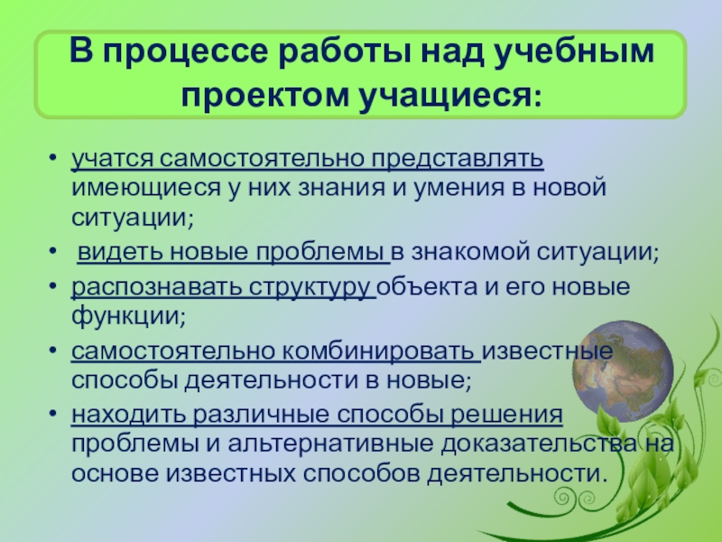 Слайд 10В процессе работы над учебным проектом учащиеся: