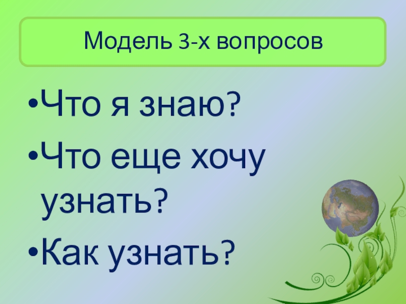 Слайд 22Модель 3-х вопросов
