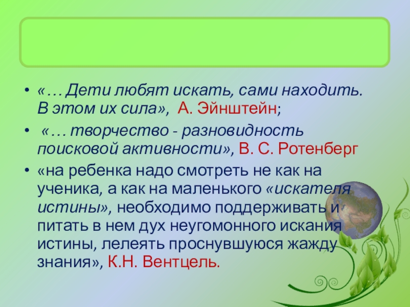 Слайд 6«… Дети любят искать, сами находить. В этом их сила», А.