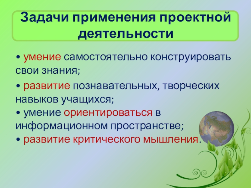 Слайд 9Задачи применения проектной деятельности