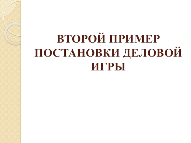 ВТОРОЙ ПРИМЕР ПОСТАНОВКИ ДЕЛОВОЙ ИГРЫ