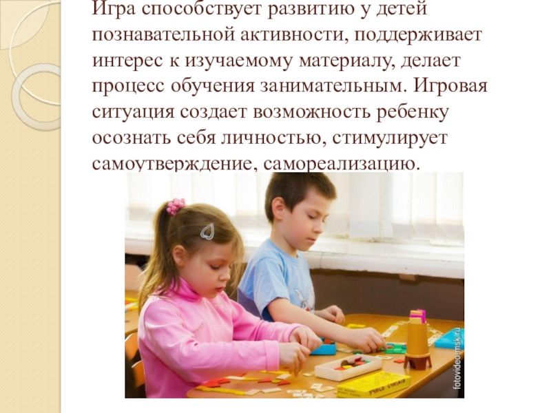 Игра способствует развитию у детей познавательной активности, поддерживает интерес к изучаемому материалу,