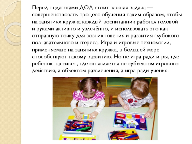 Перед педагогами ДОД стоит важная задача — совершенствовать процесс обучения таким