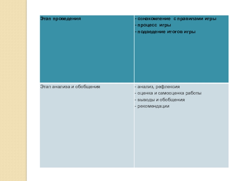 Этап проведения – процесс игры. С началом игры никто не имеет права