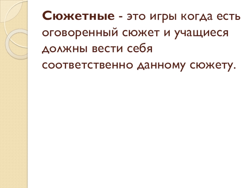 Сюжетные - это игры когда есть оговоренный сюжет и учащиеся должны вести