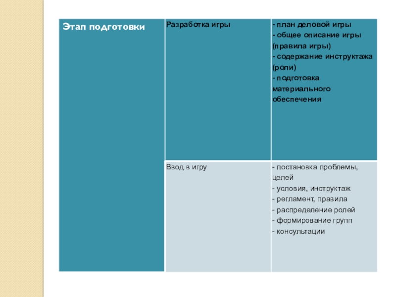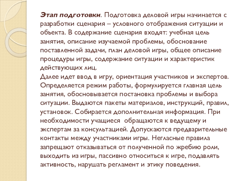 Этап подготовки. Подготовка деловой игры начинается с разработки сценария – условного