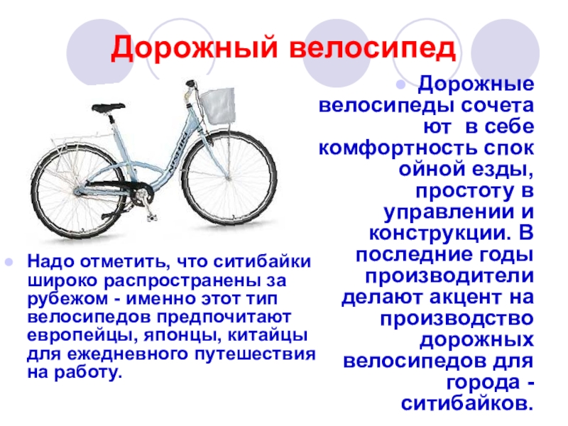Надо отметить, что ситибайки широко распространены за рубежом - именно этот тип велосипедов предпочитают европейцы, японцы, китайцы для ежедневного путешествия на работу.