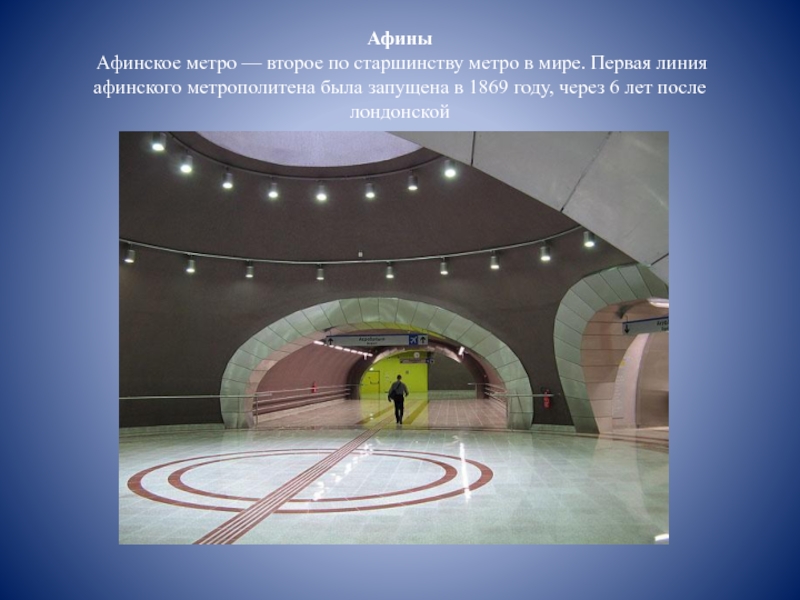 Слайд 12Афины Афинское метро — второе по старшинству метро в мире. Первая