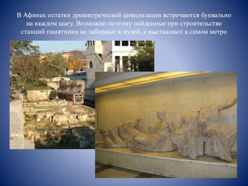 В Афинах остатки древнегреческой цивилизации встречаются буквально на каждом шагу. Возможно поэтому найденные при строительстве станций памятники