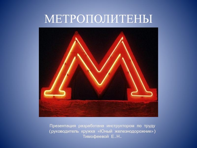 МЕТРОПОЛИТЕНЫПрезентация разработана инструктором по труду (руководитель кружка «Юный железнодорожник») Тимофеевой Е.Н.