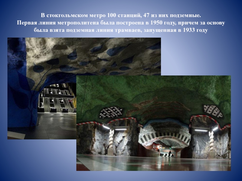 Слайд 10В стокгольмском метро 100 станций, 47 из них подземные. Первая линия