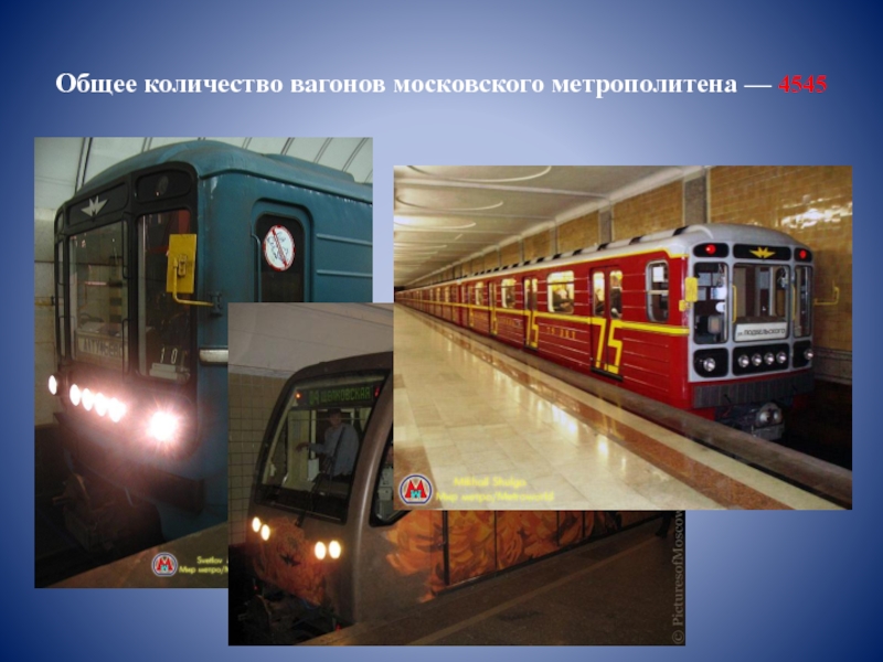 Слайд 6Общее количество вагонов московского метрополитена — 4545