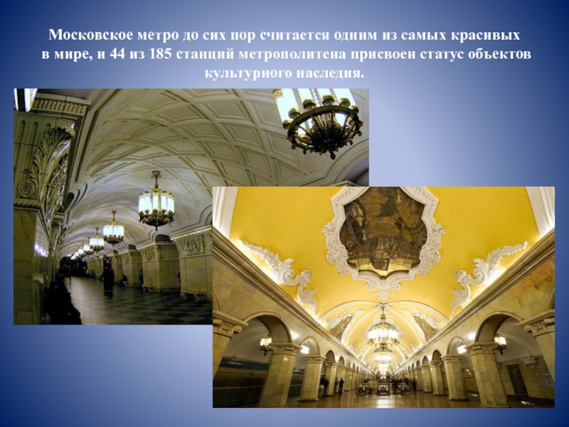 Слайд 4 Московское метро до сих пор считается одним из самых красивых в