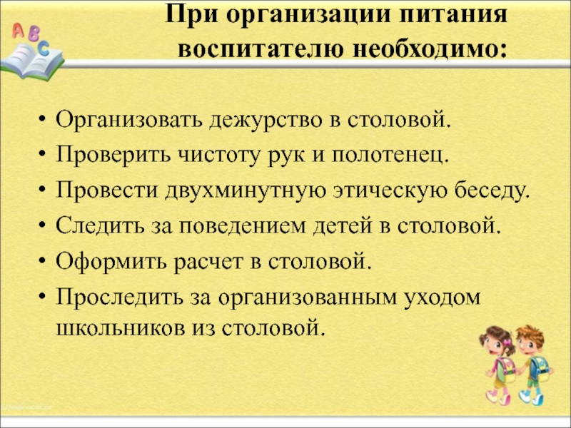 Обязанности воспитателя могут быть разделены на две группы: повседневные