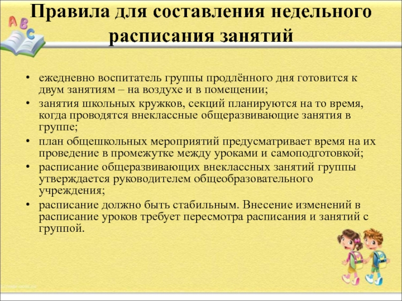 расписание общеразвивающих внеклассных занятий группы утверждается руководителем общеобразовательного учреждения;