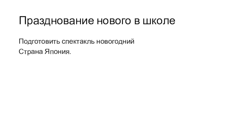 Празднование нового в школеПодготовить спектакль новогодний Страна Япония.