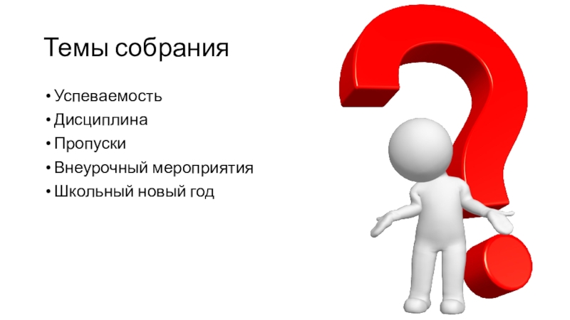 Темы собранияУспеваемостьДисциплинаПропускиВнеурочный мероприятияШкольный новый год