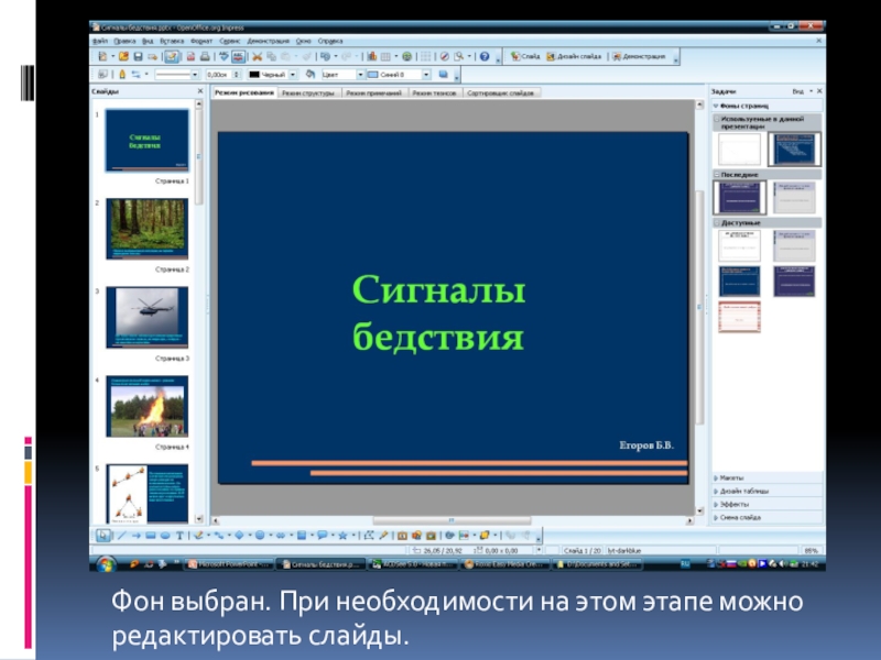 Фон выбран. При необходимости на этом этапе можно редактировать слайды.
