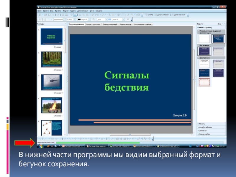 Слайд 9В нижней части программы мы видим выбранный формат и бегунок сохранения.