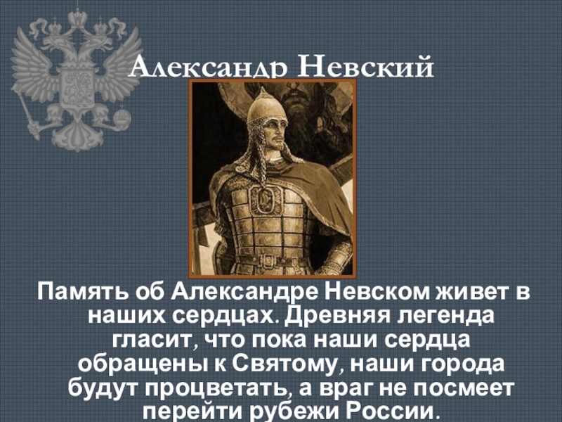 Память об Александре Невском живет в наших сердцах. Древняя легенда