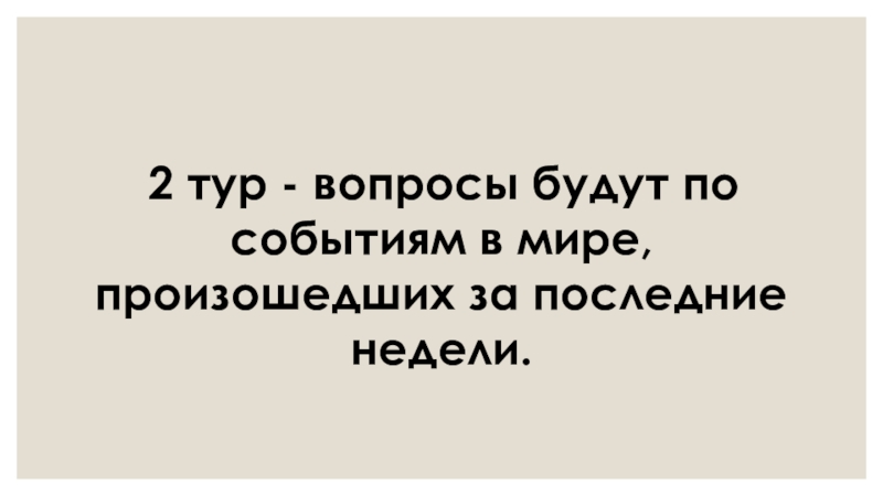 Слайд 17 2 тур - вопросы будут по событиям в мире, произошедших