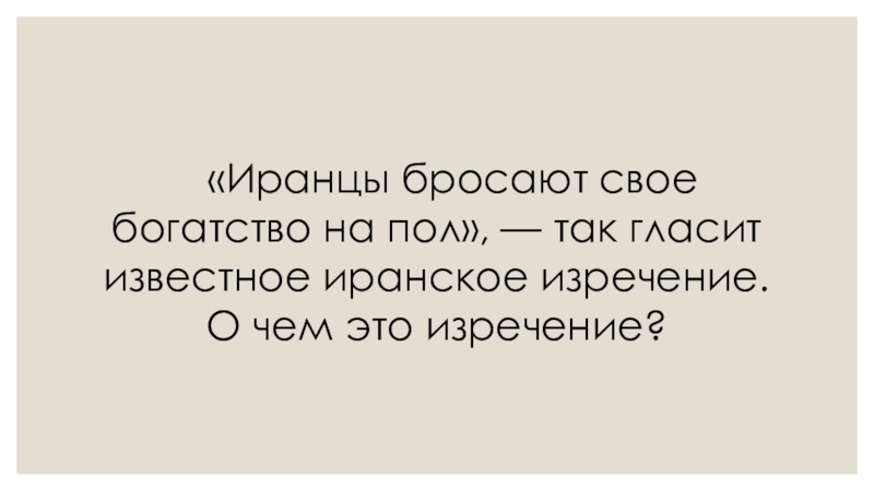 Слайд 8 «Иранцы бросают свое богатство на пол», — так гласит известное иранское изречение. О чем