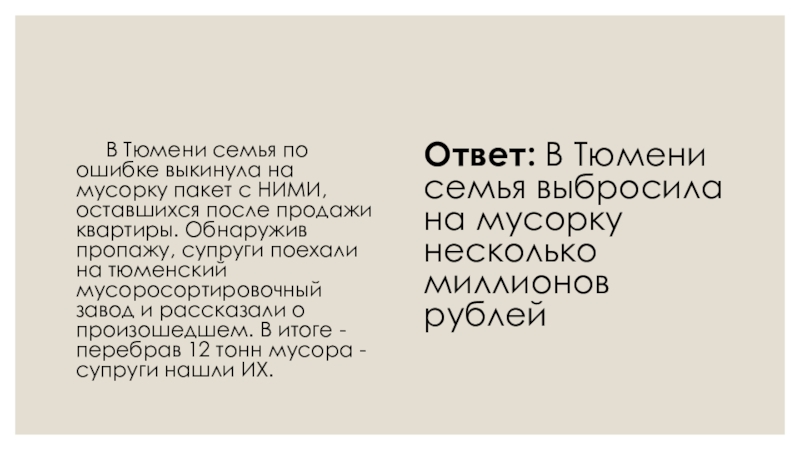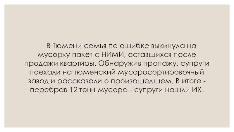 Слайд 18 В Тюмени семья по ошибке выкинула на мусорку пакет с НИМИ,