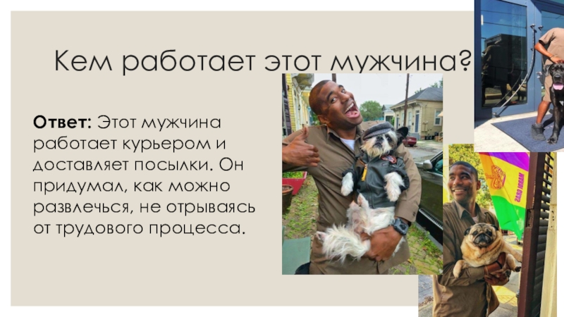 Ответ: Этот мужчина работает курьером и доставляет посылки.