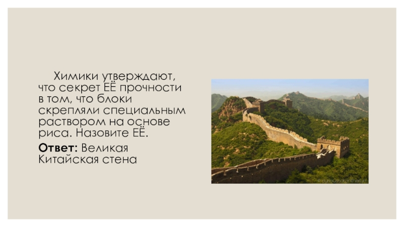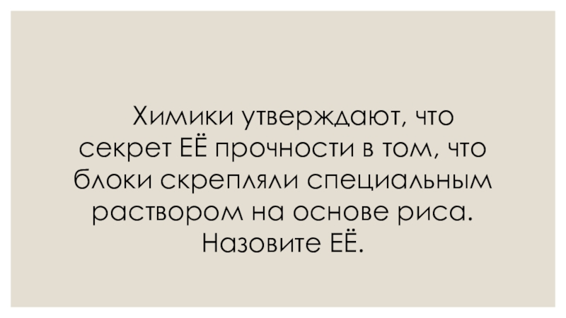 Слайд 12 Химики утверждают, что секрет ЕЁ прочности в том, что блоки скрепляли специальным раствором