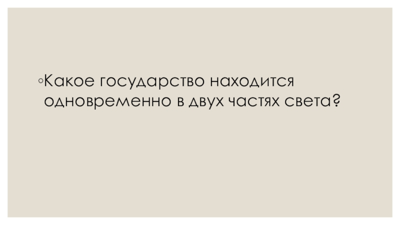 Слайд 48Какое государство находится одновременно в двух частях света?