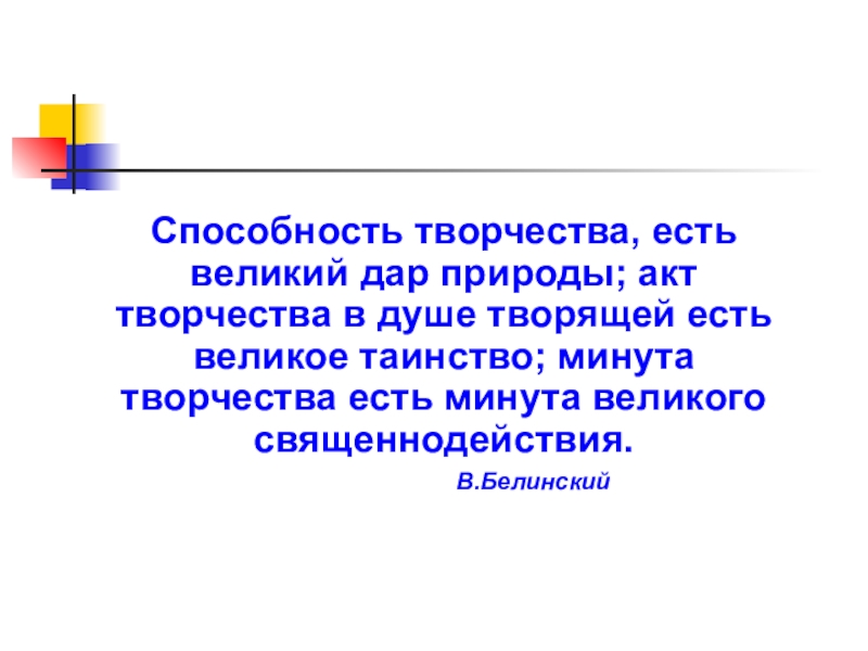 Способность творчества, есть великий дар природы; акт творчества в душе творящей