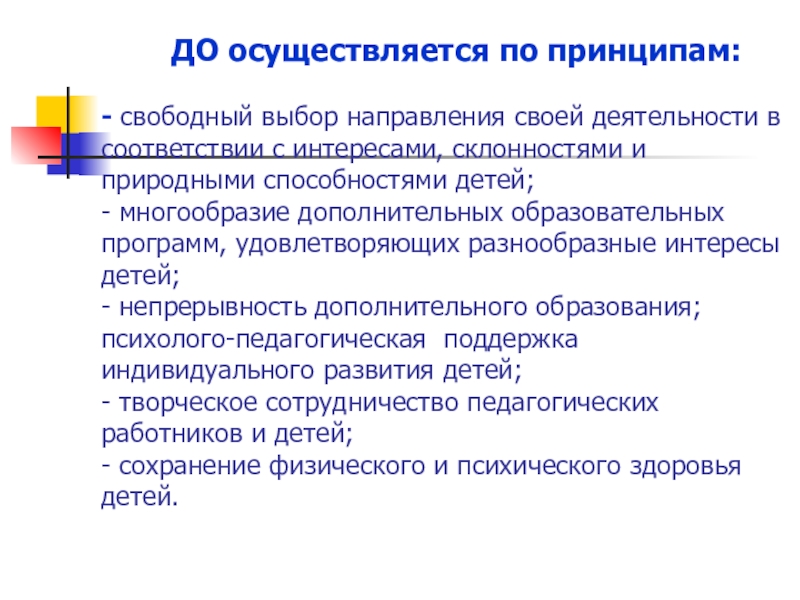 - многообразие дополнительных образовательных программ, удовлетворяющих разнообразные интересы детей;