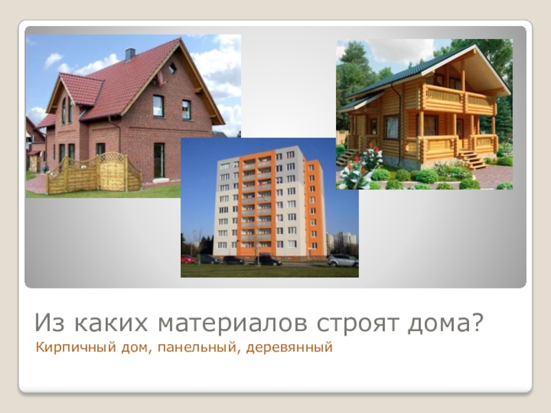 Из каких материалов строят дома?Кирпичный дом, панельный, деревянный