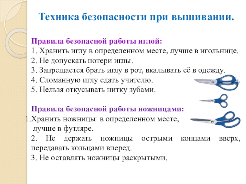 2. Не держать ножницы острыми концами вверх, передавать кольцами вперед.