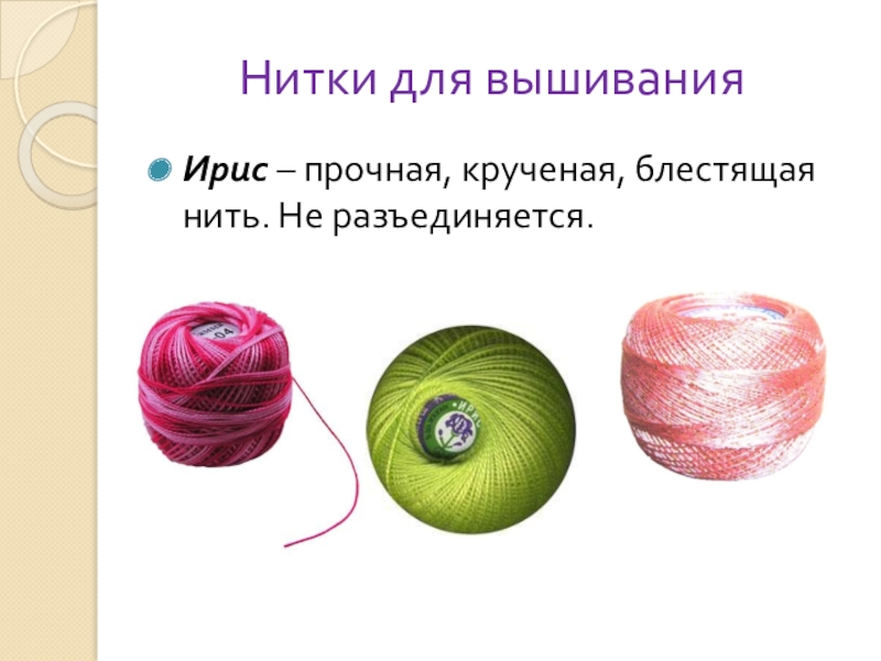 Ирис – прочная, крученая, блестящая нить. Не разъединяется.