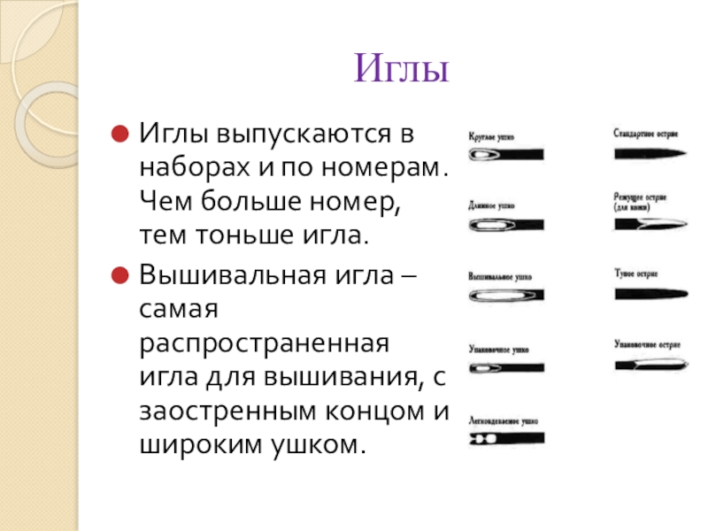Вышивальная игла – самая распространенная игла для вышивания, с заостренным концом и широким ушком.