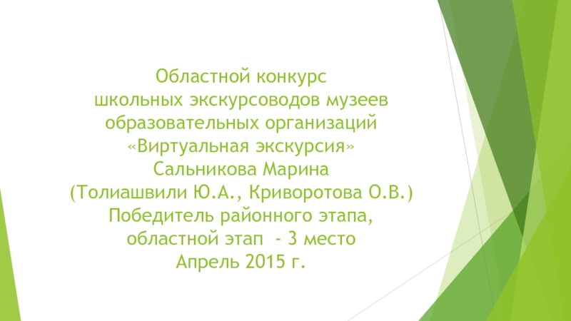 Слайд 9Областной конкурс школьных экскурсоводов музеев образовательных организаций «Виртуальная экскурсия» Сальникова Марина (Толиашвили