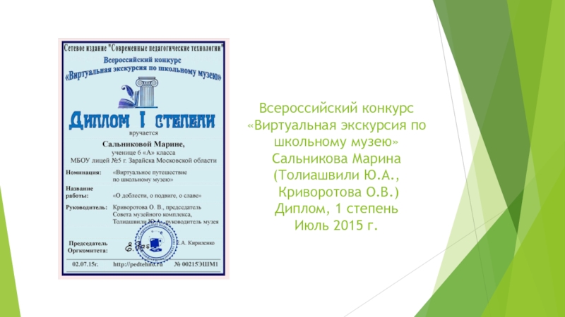 Слайд 10Всероссийский конкурс «Виртуальная экскурсия по школьному музею» Сальникова Марина (Толиашвили Ю.А., Криворотова